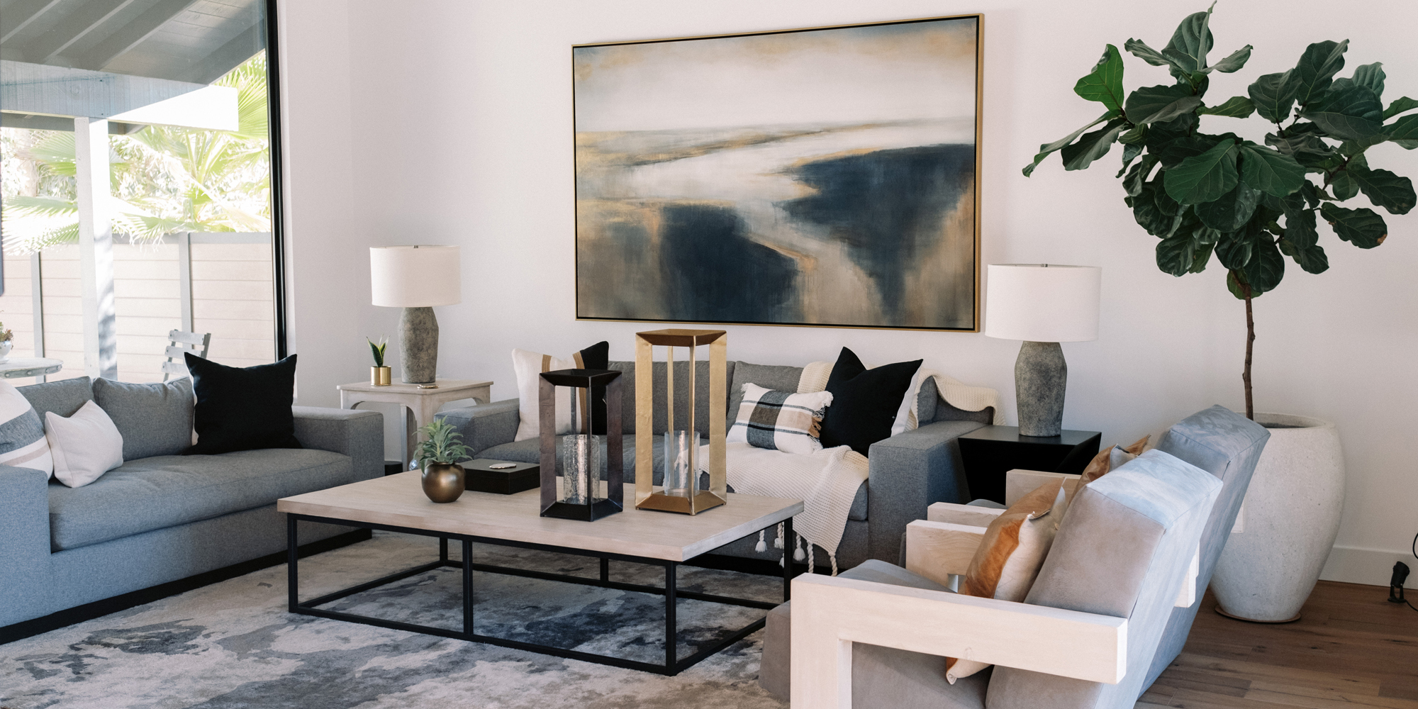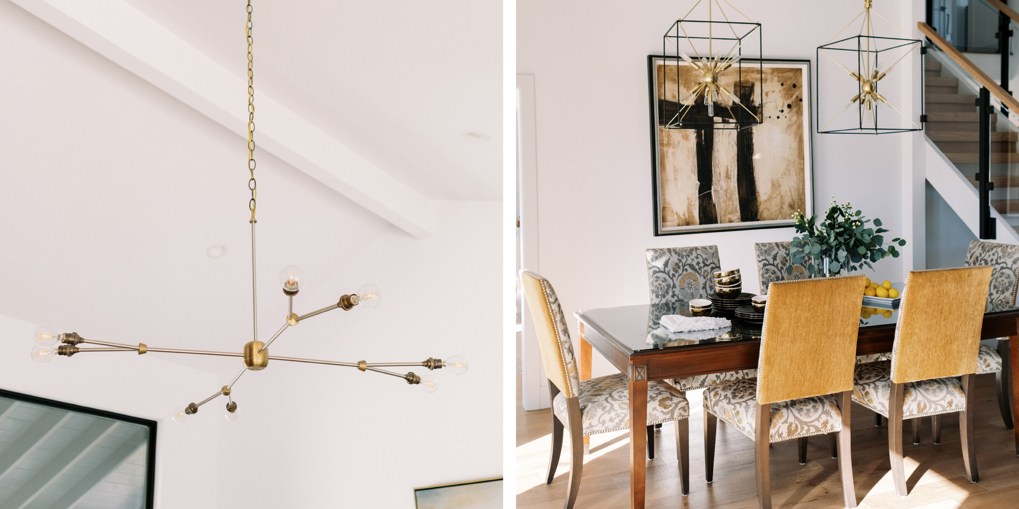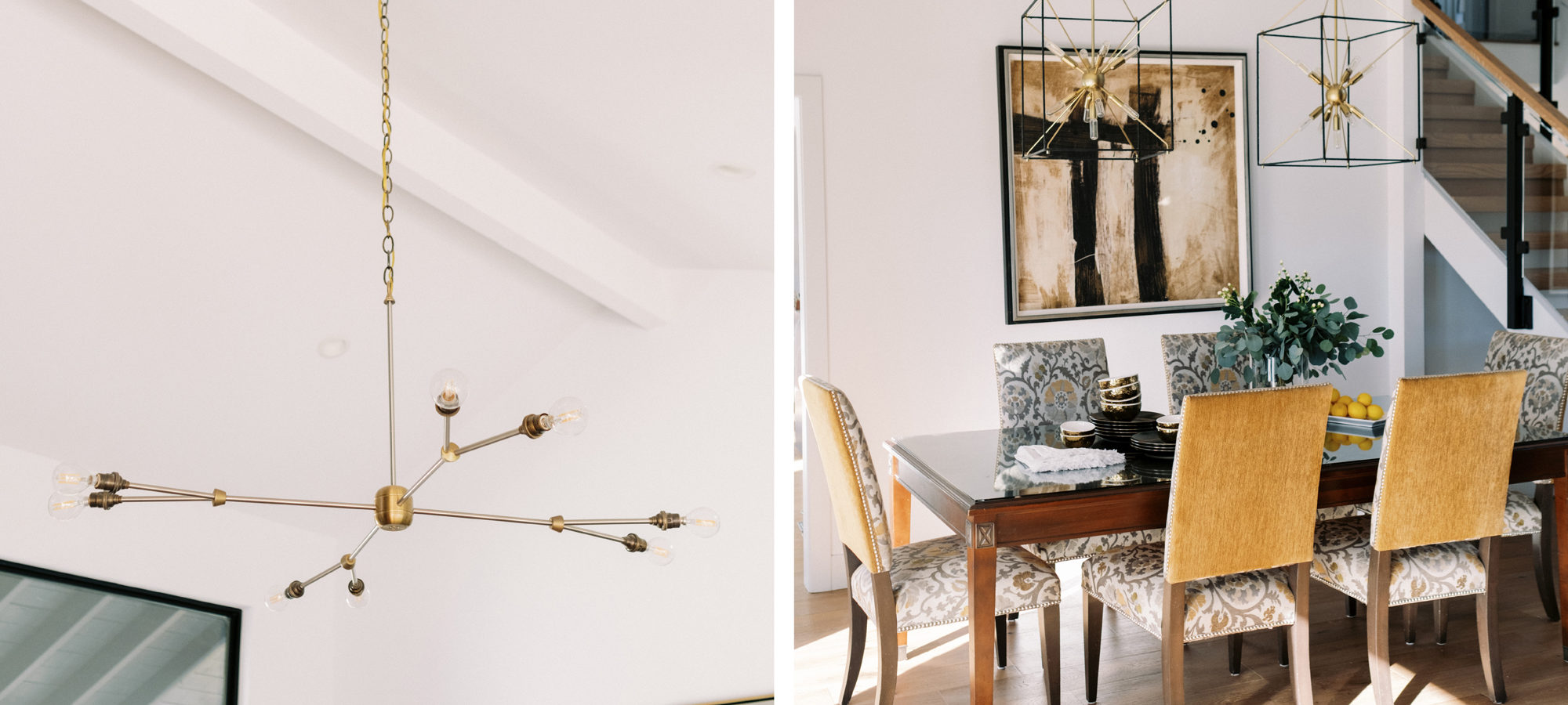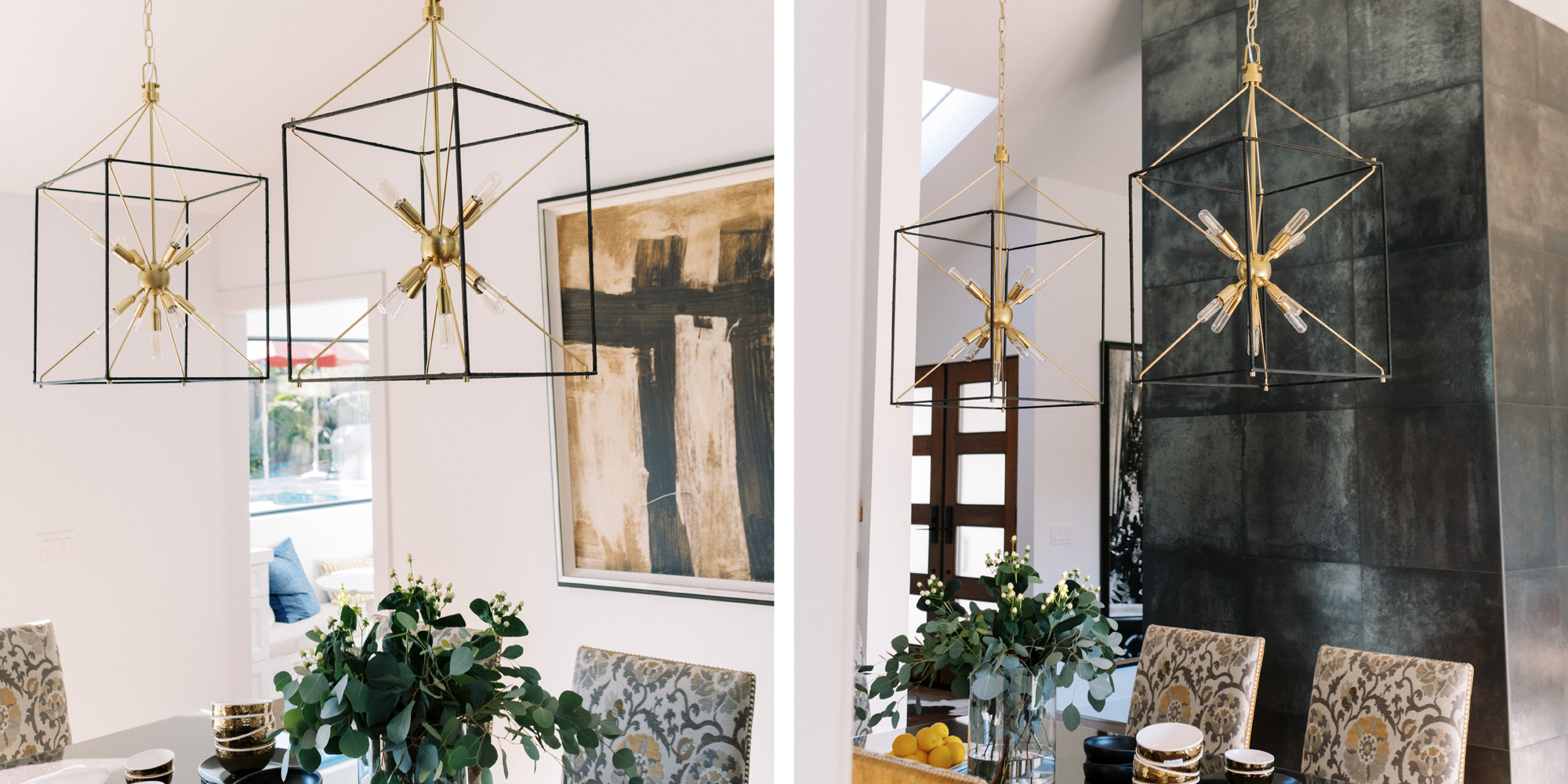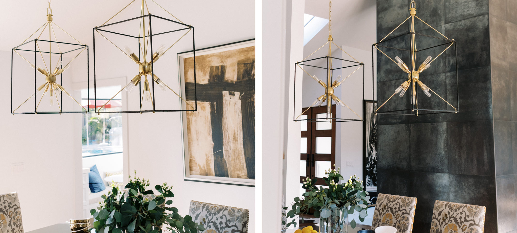 We are proud of this renovation that brought tailored style to this once outdated home. The curated furniture, art, and lighting create a truly unique and exciting interior.