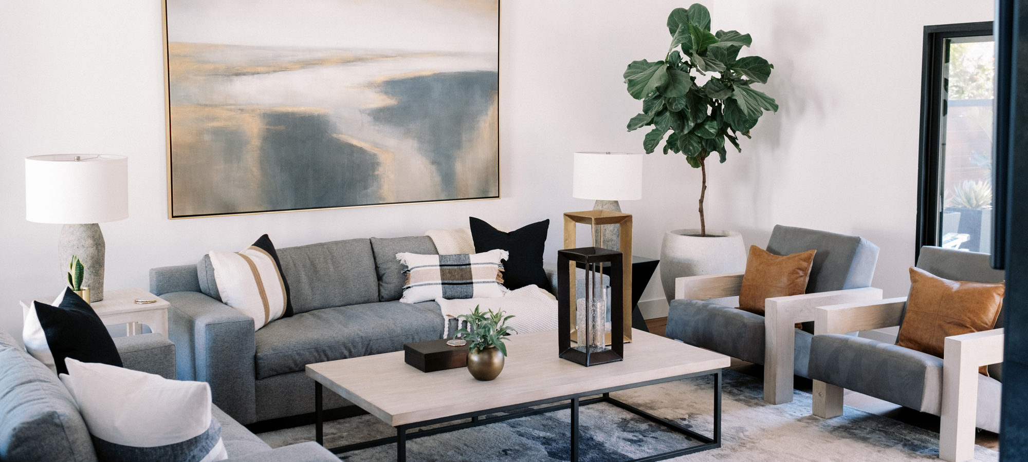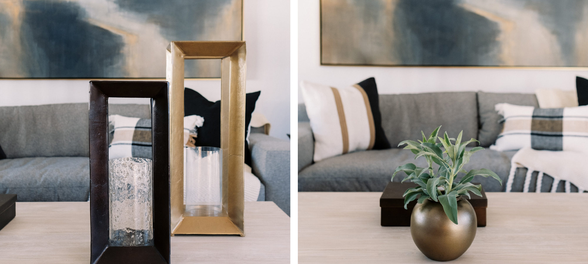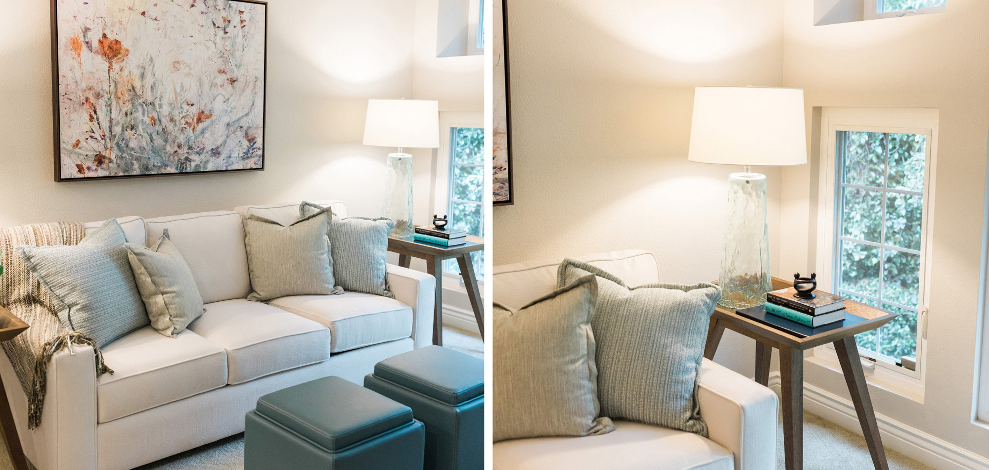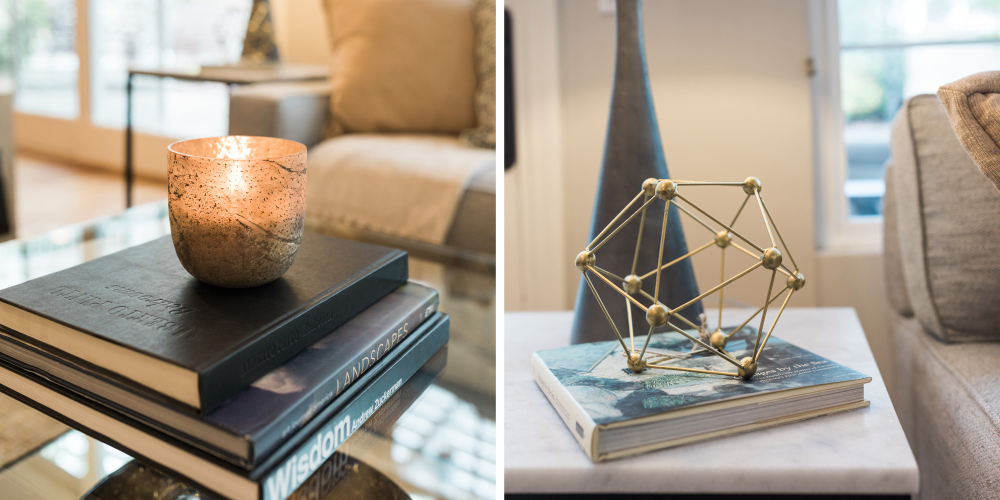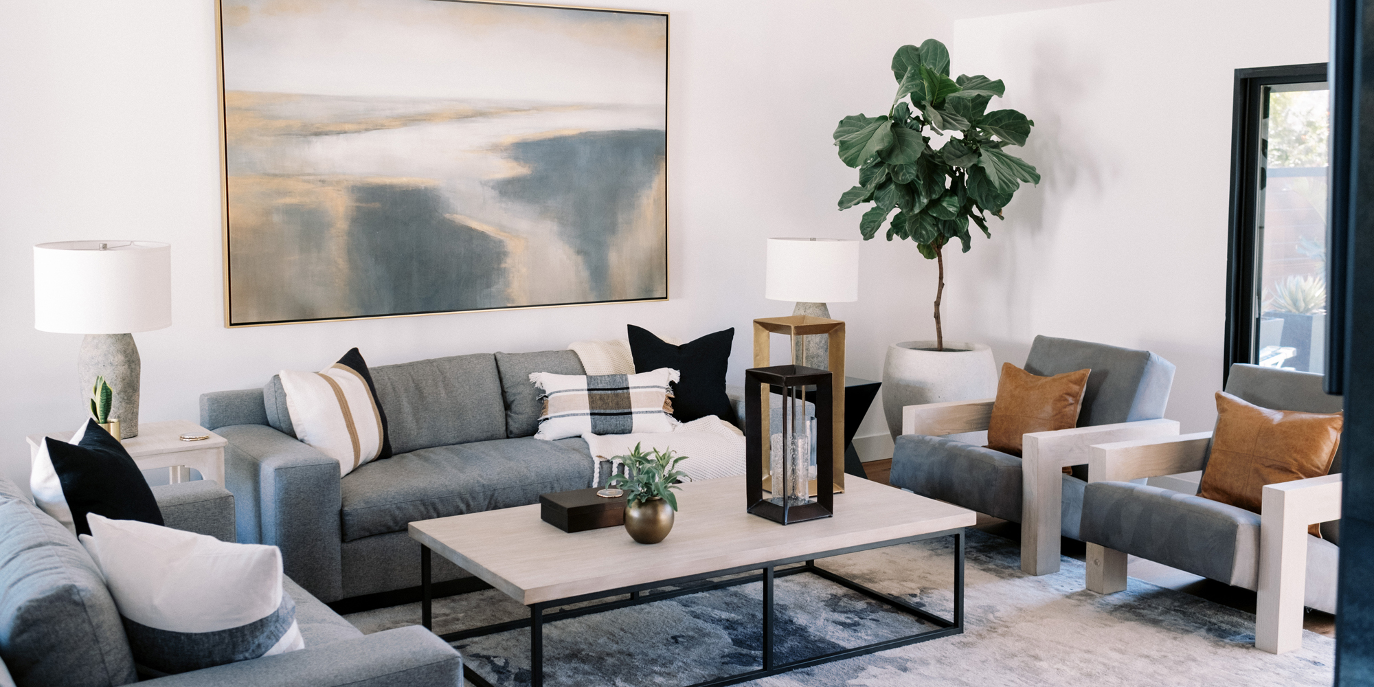 We are proud of this renovation that brought tailored style to this once outdated home. The curated furniture, art, and lighting create a truly unique and exciting interior.