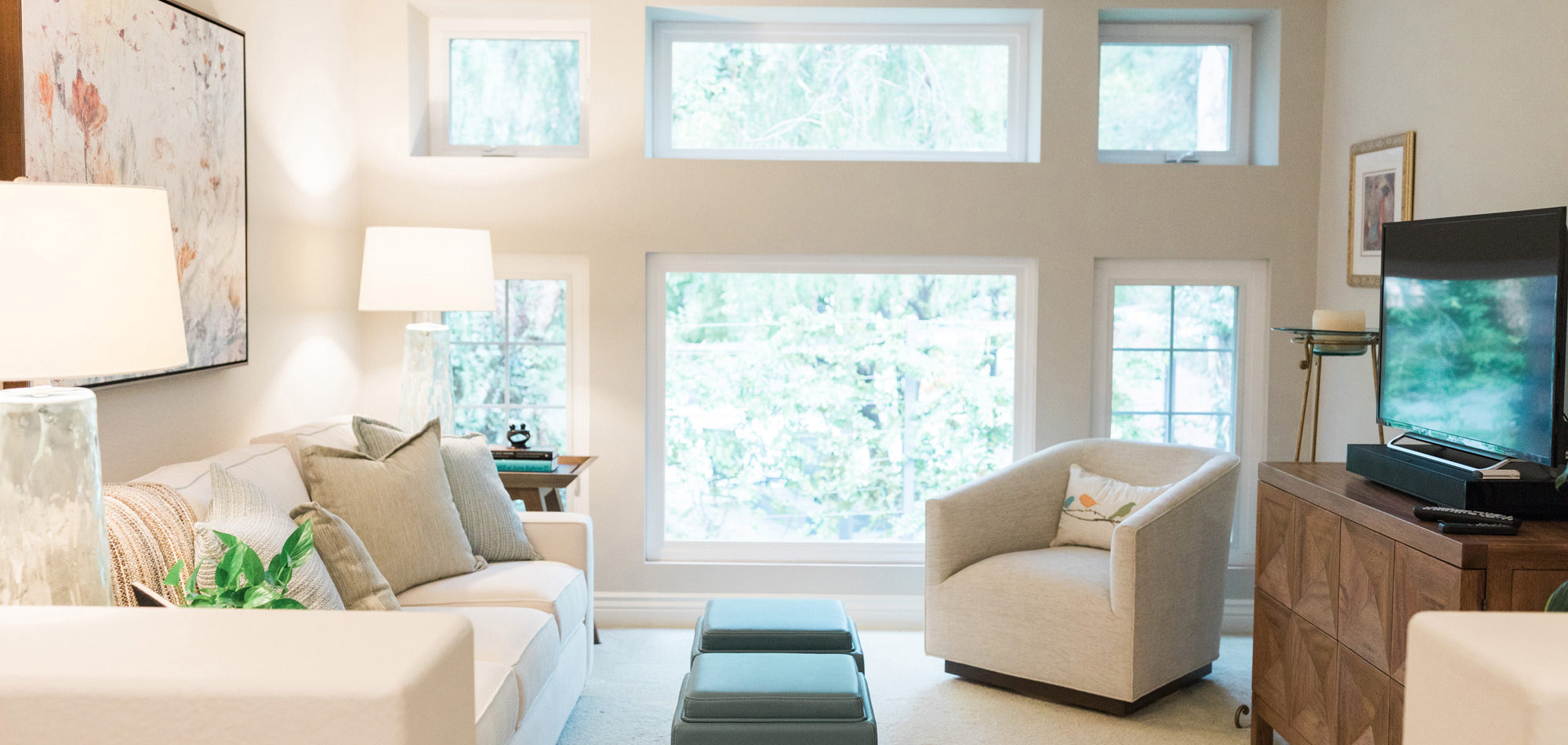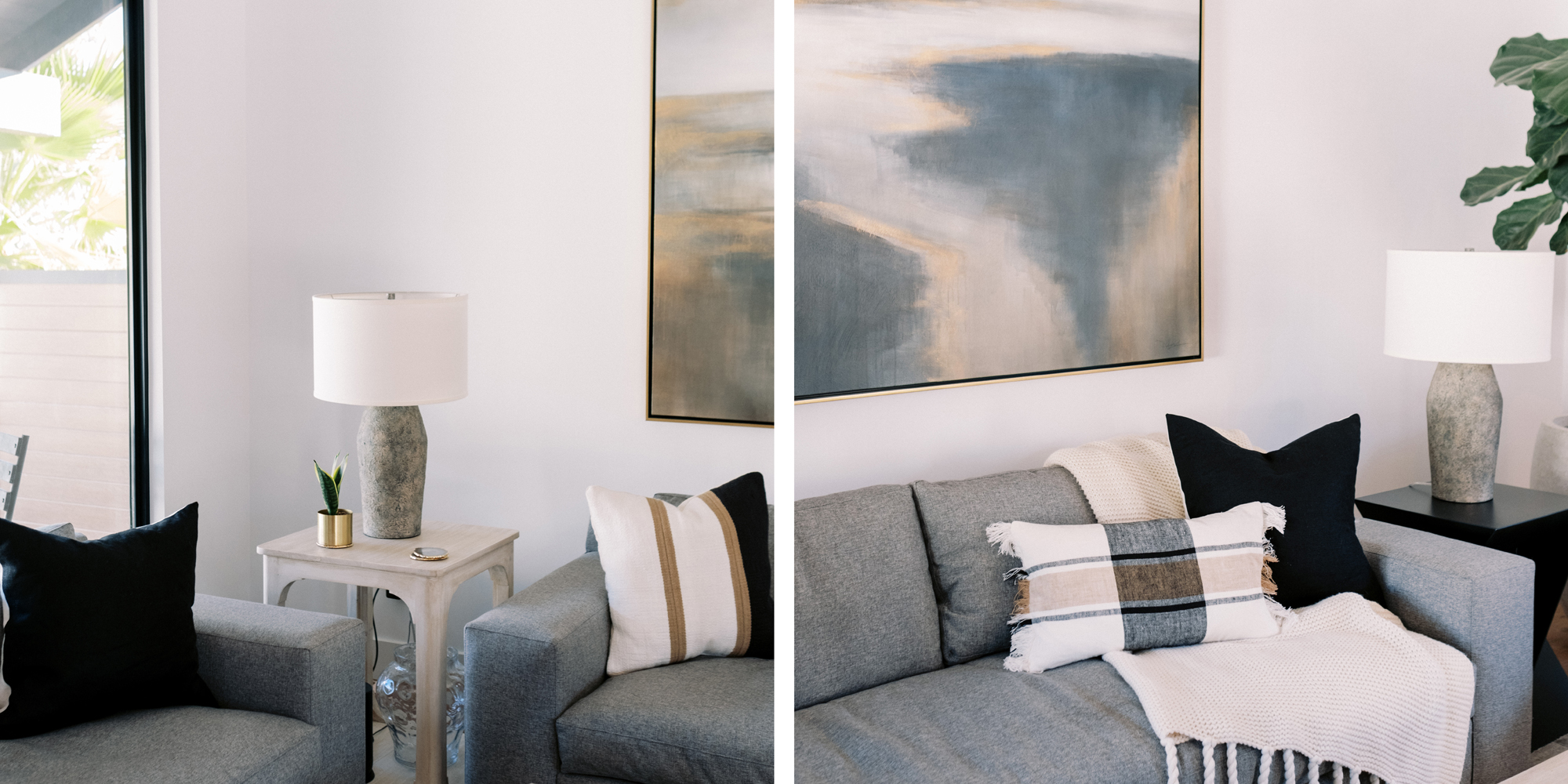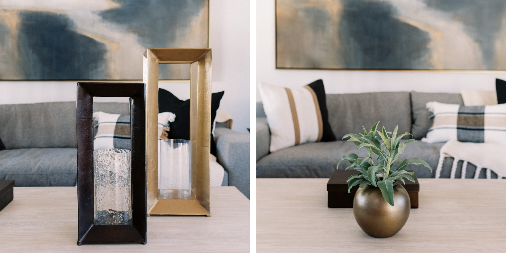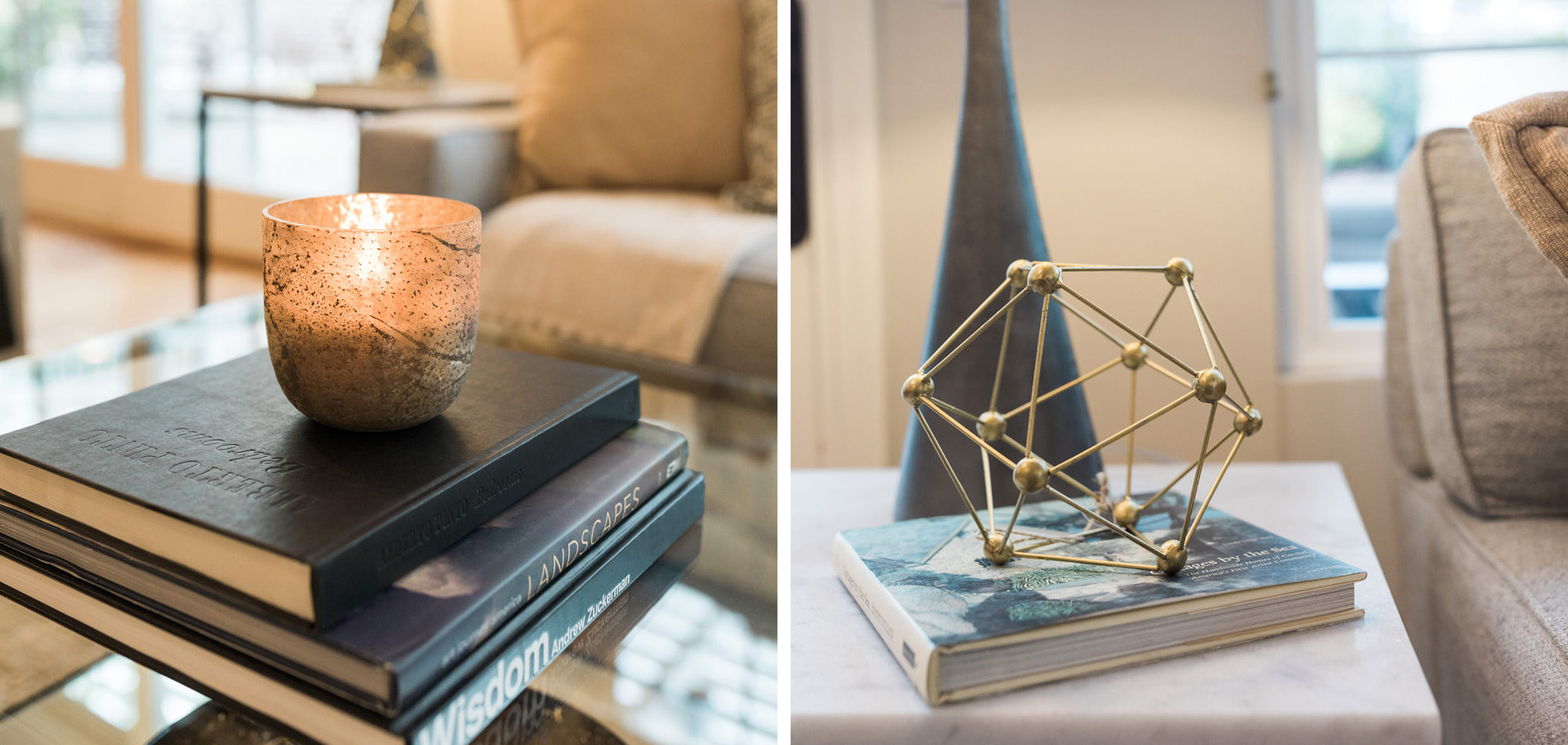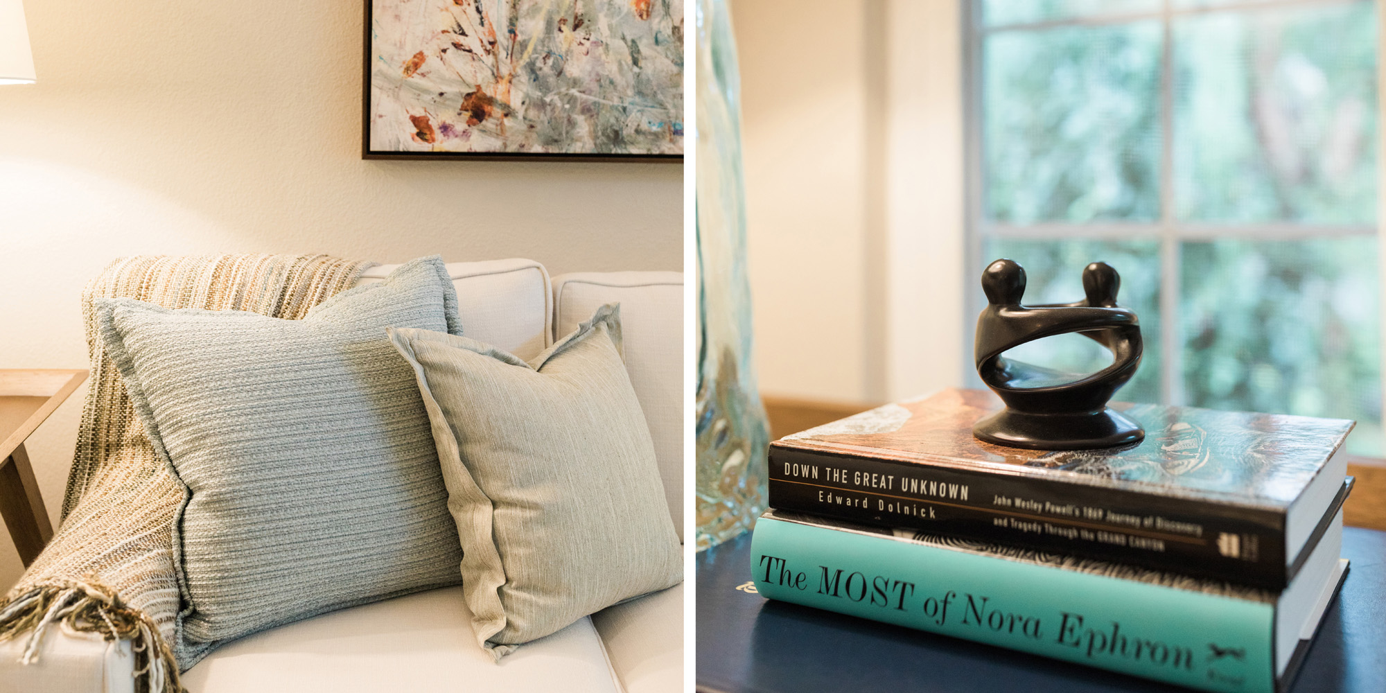 We are proud of this renovation that brought tailored style to this once outdated home. The curated furniture, art, and lighting create a truly unique and exciting interior.