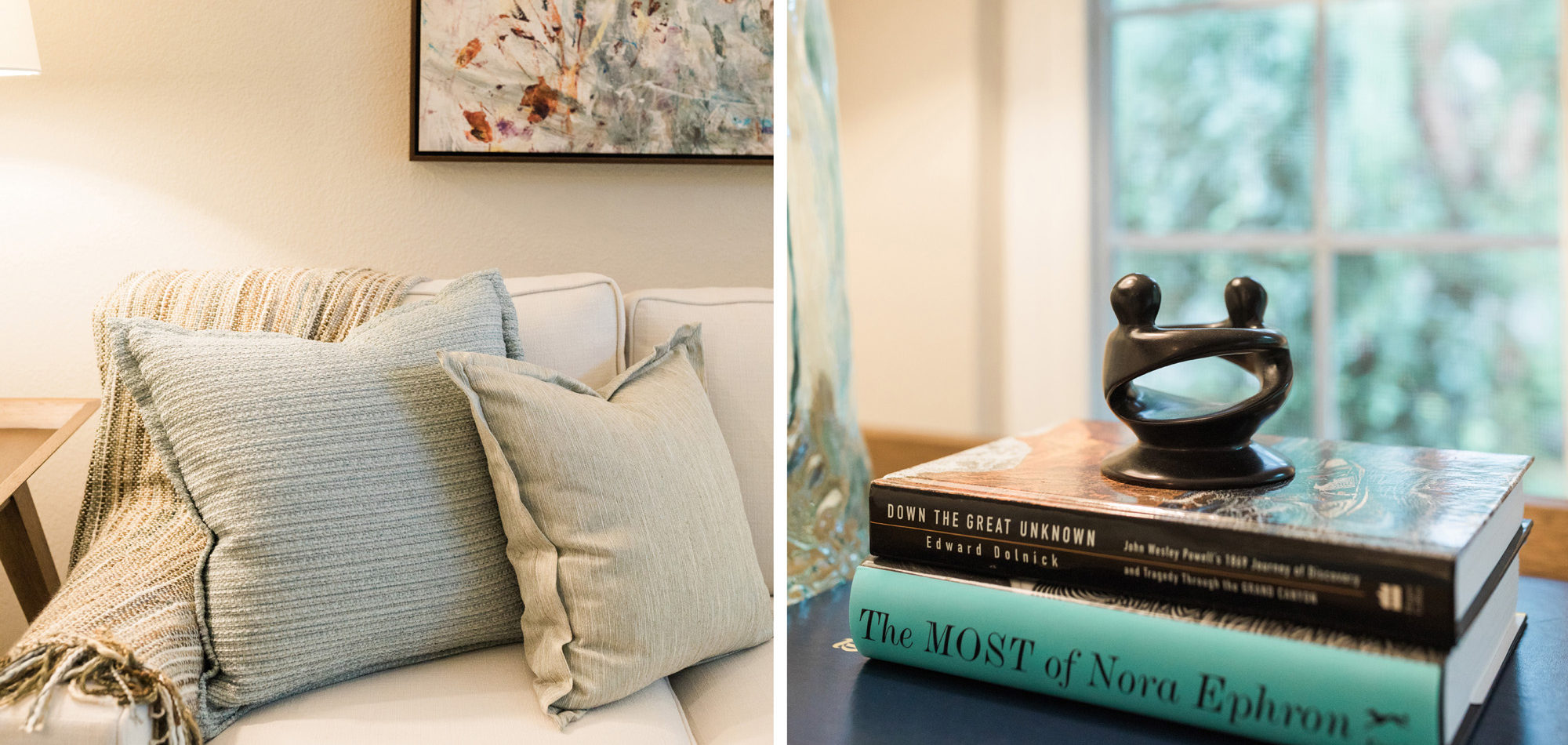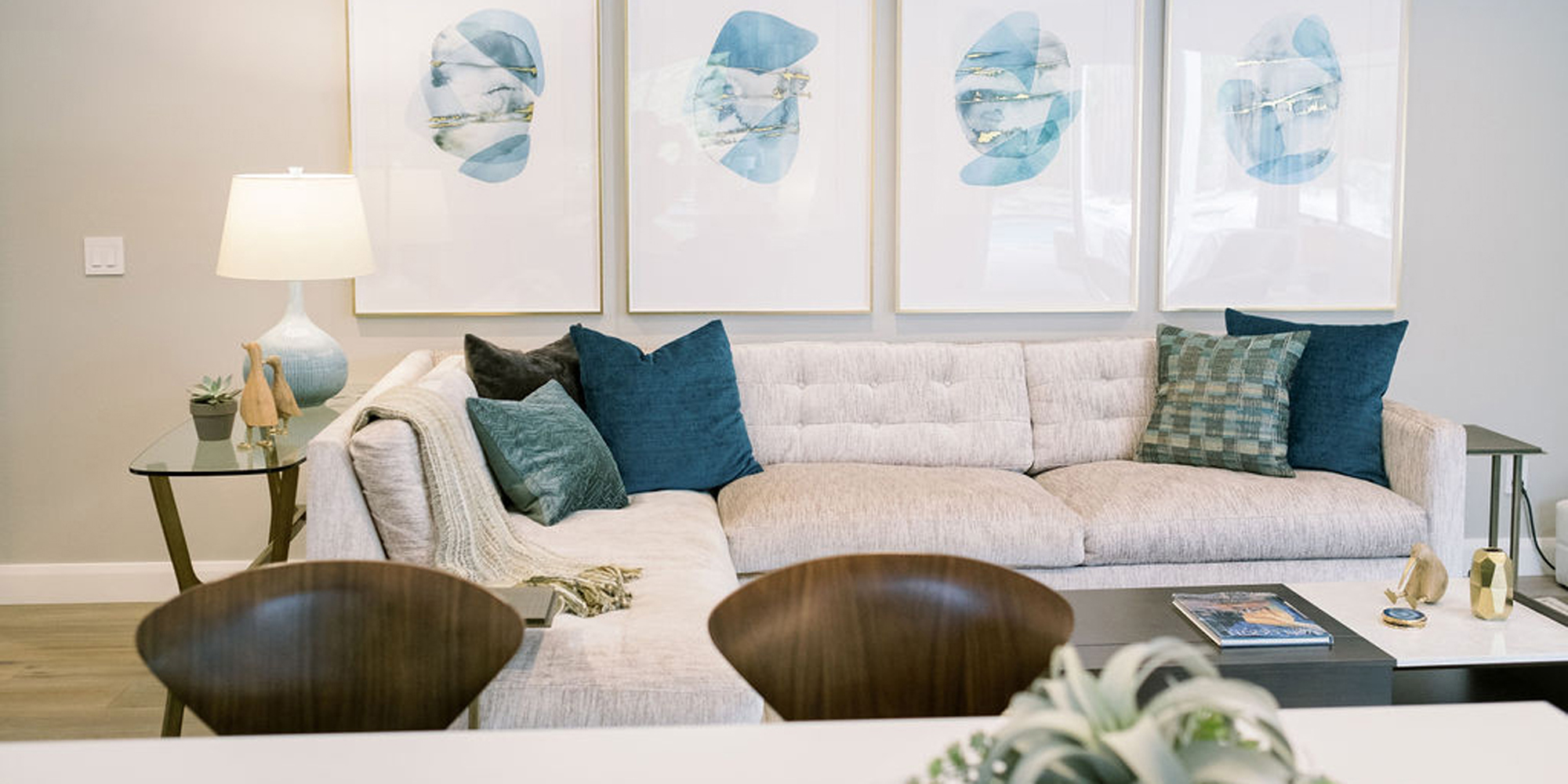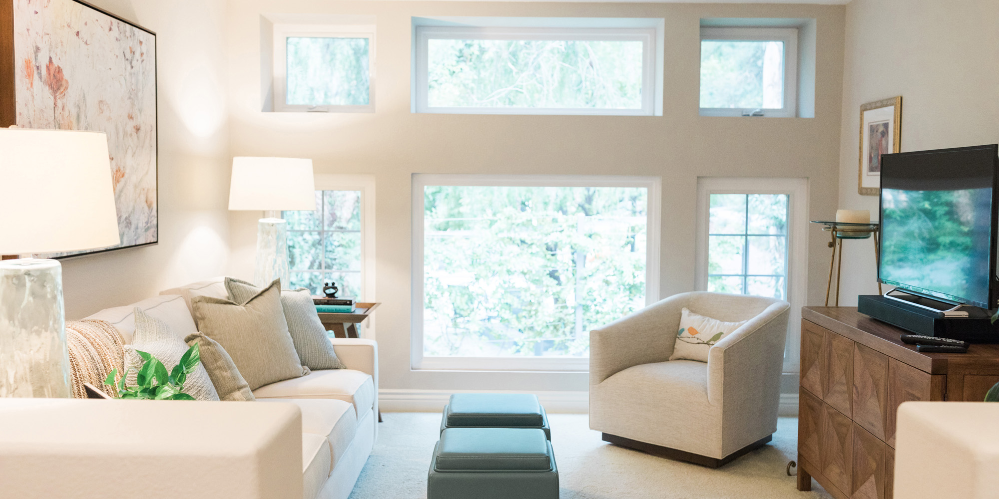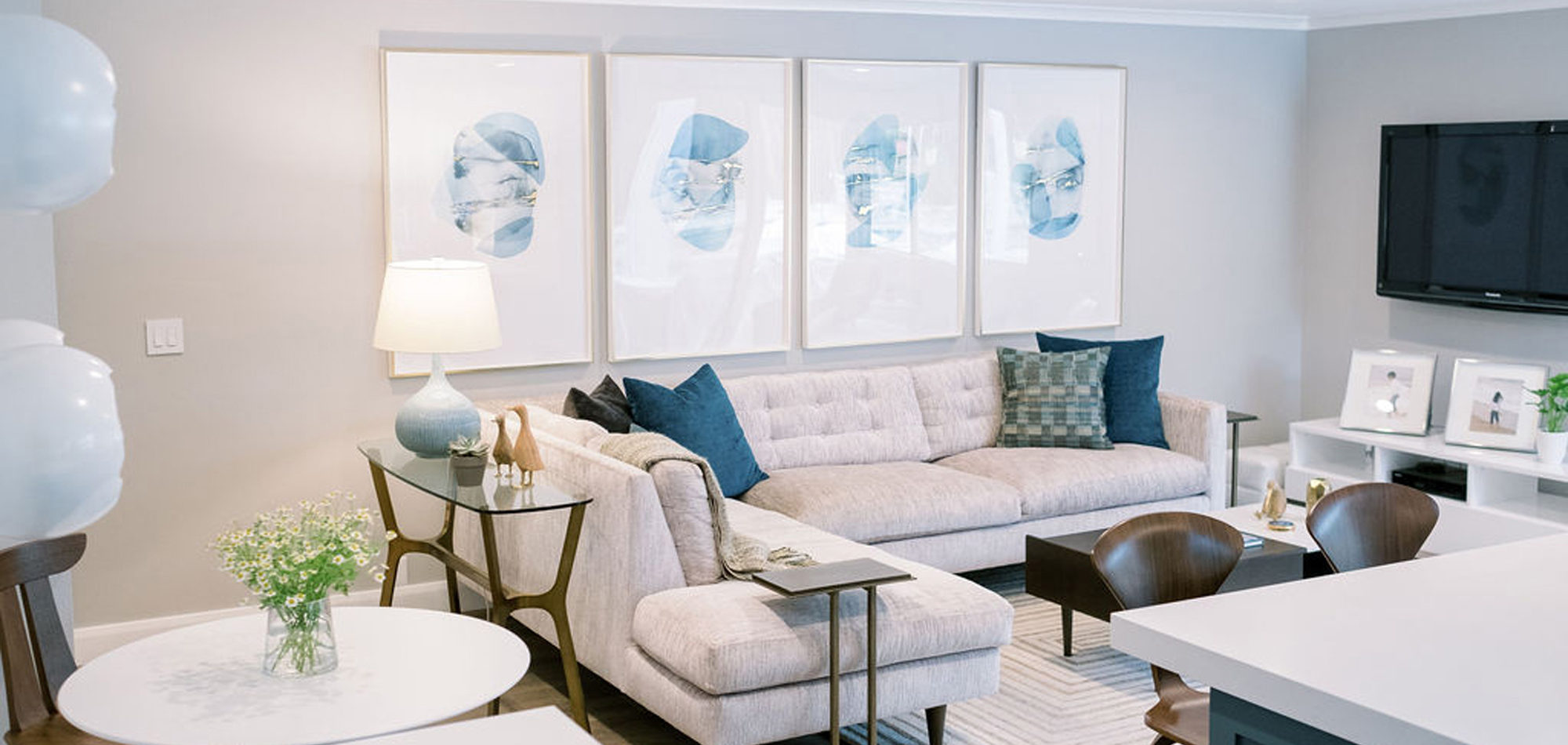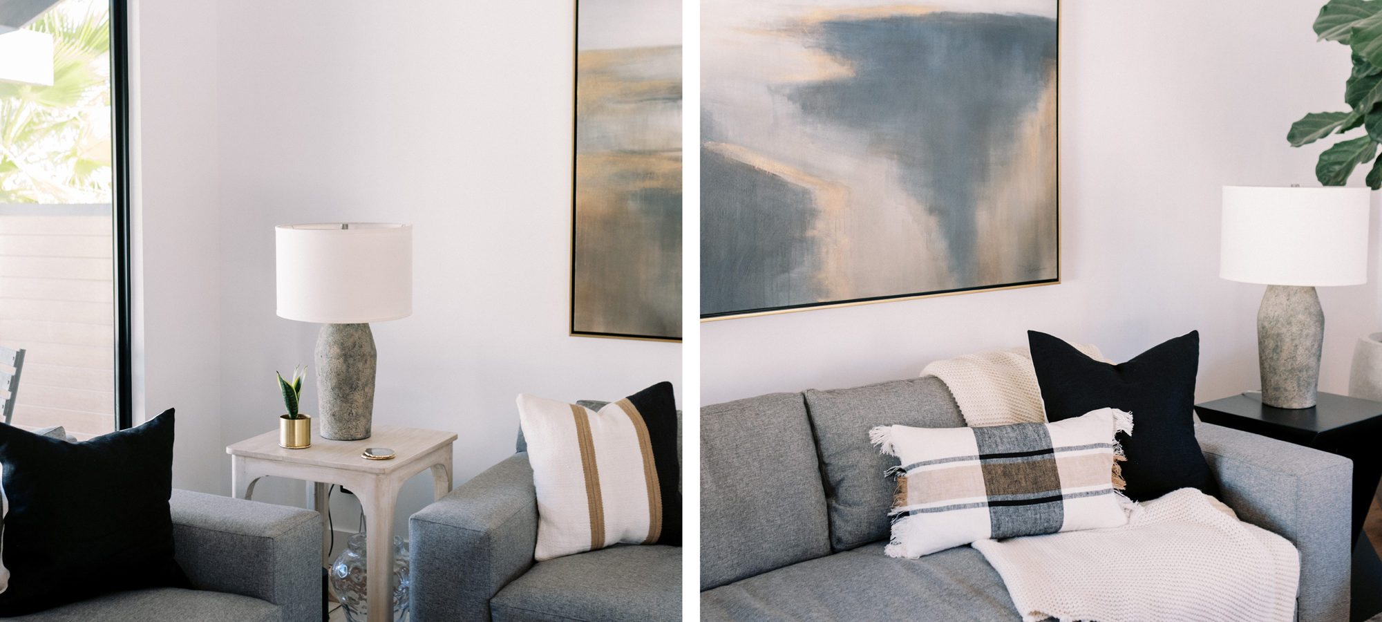 We are proud of this renovation that brought tailored style to this once outdated home. The curated furniture, art, and lighting create a truly unique and exciting interior.