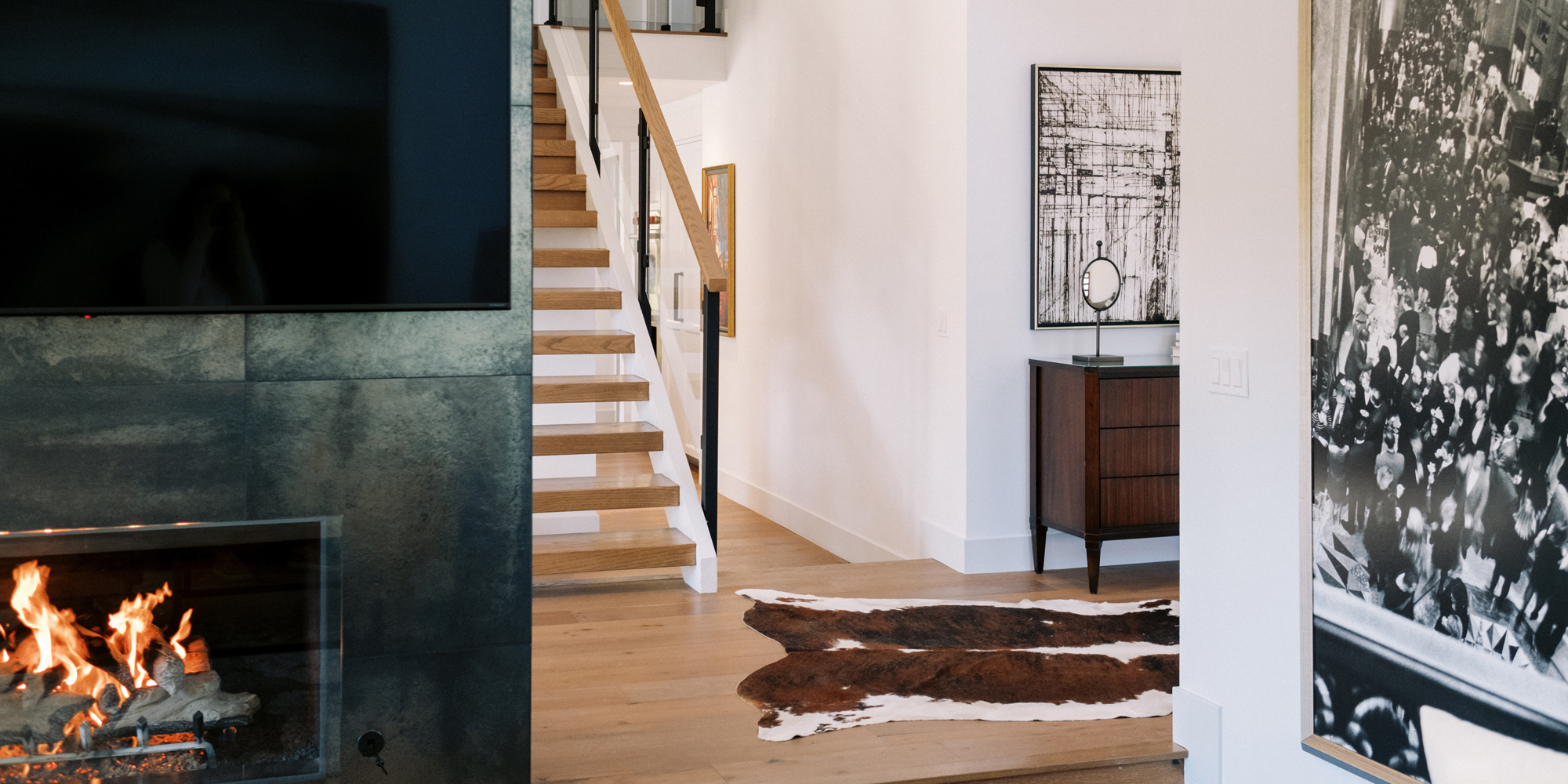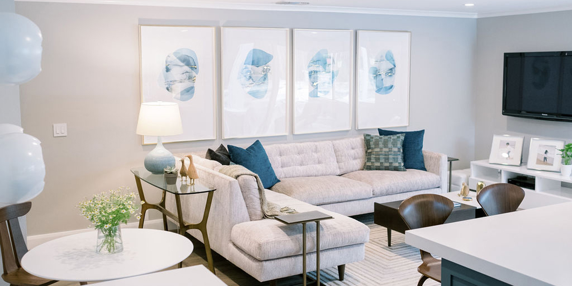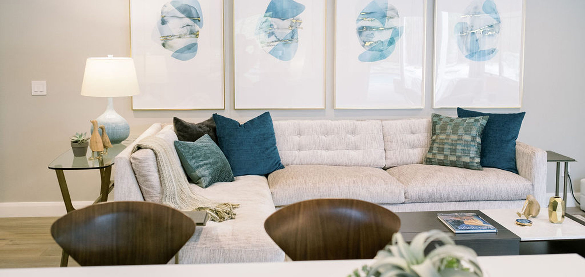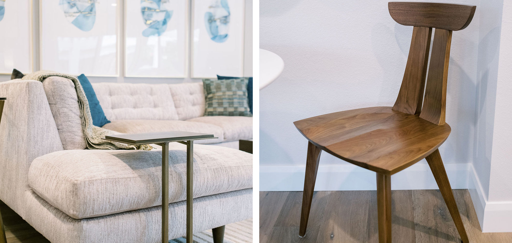 We are proud of this renovation that brought tailored style to this once outdated home. The curated furniture, art, and lighting create a truly unique and exciting interior.