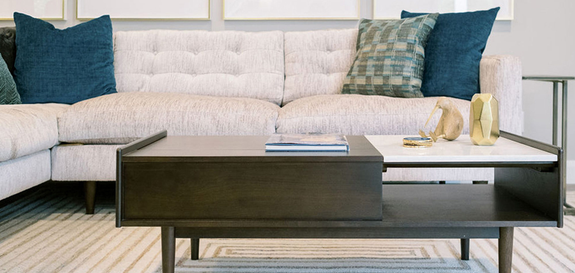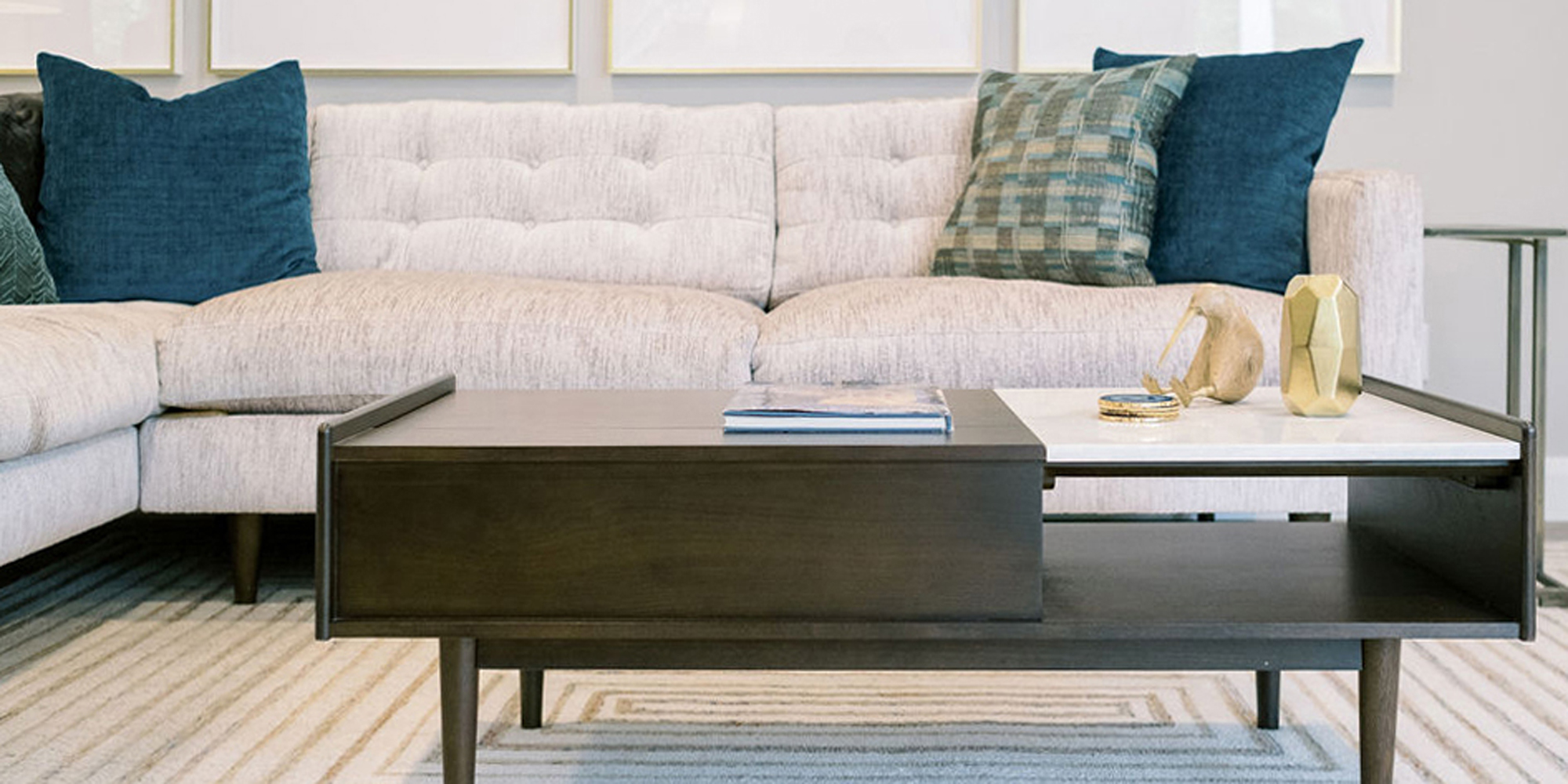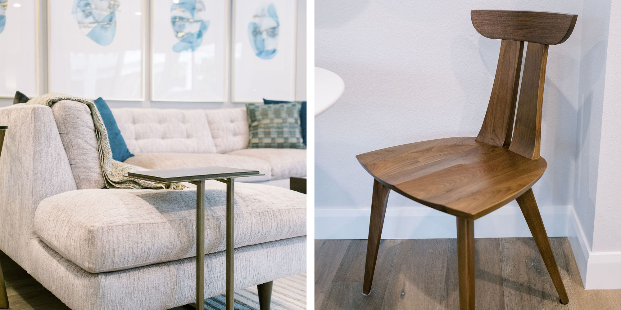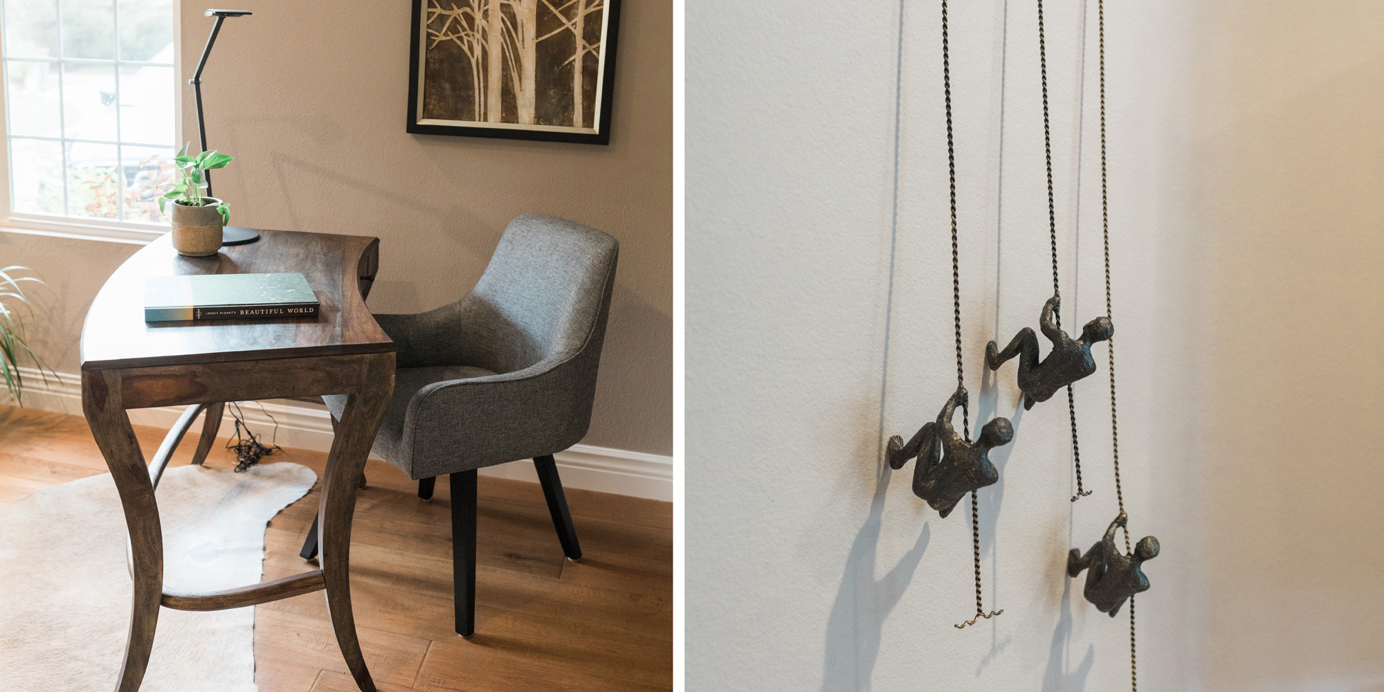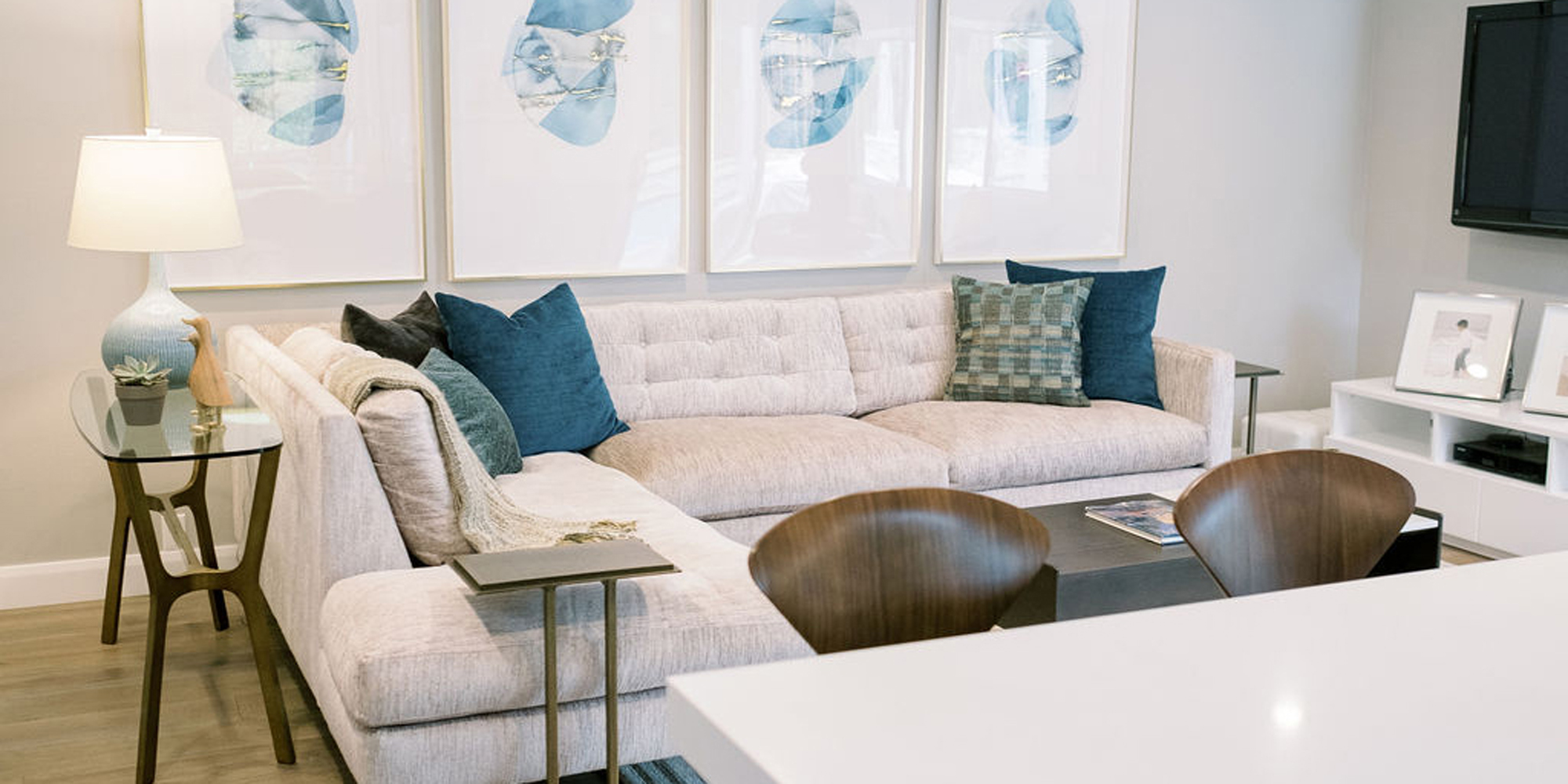 We are proud of this renovation that brought tailored style to this once outdated home. The curated furniture, art, and lighting create a truly unique and exciting interior.