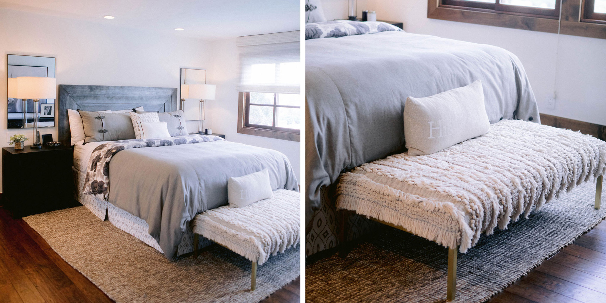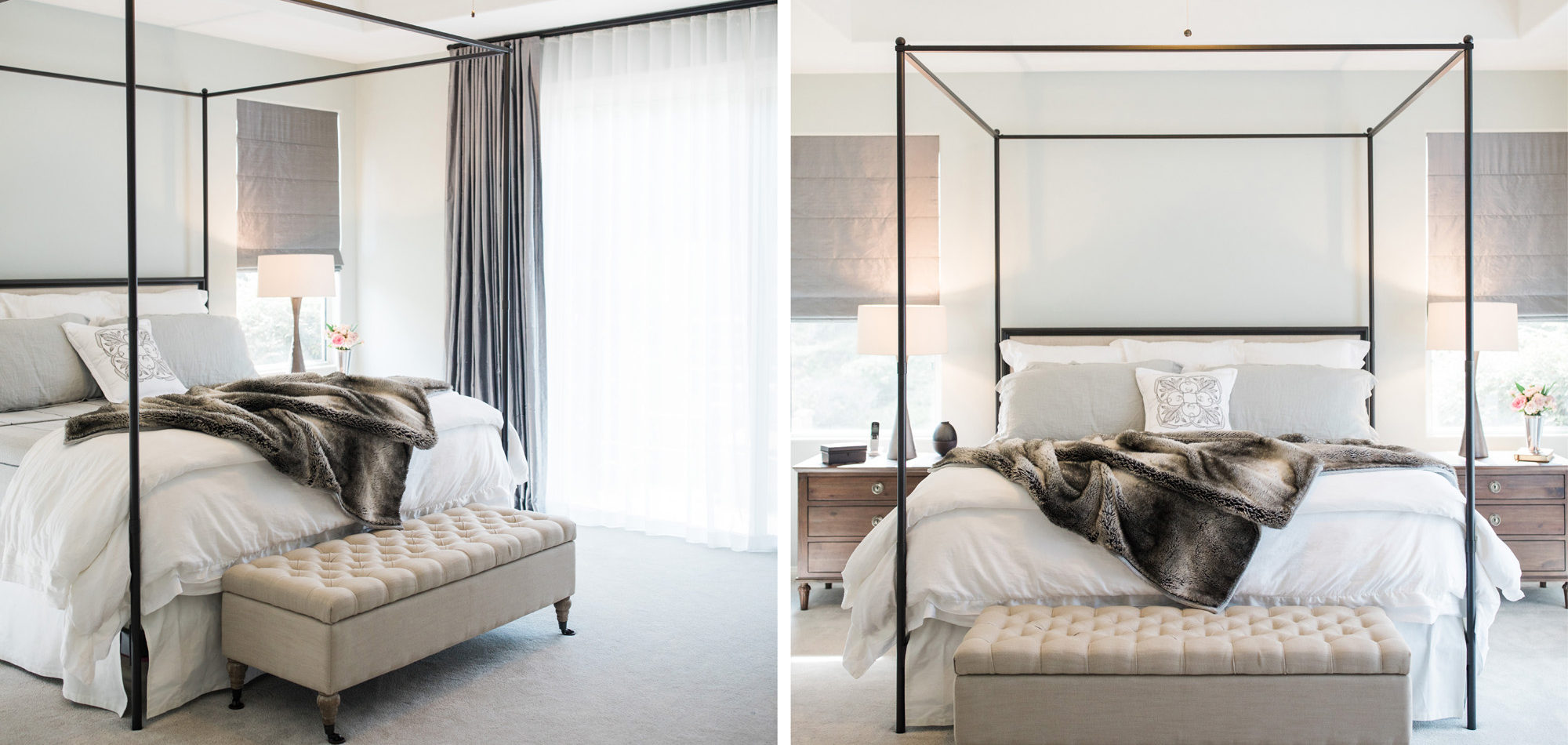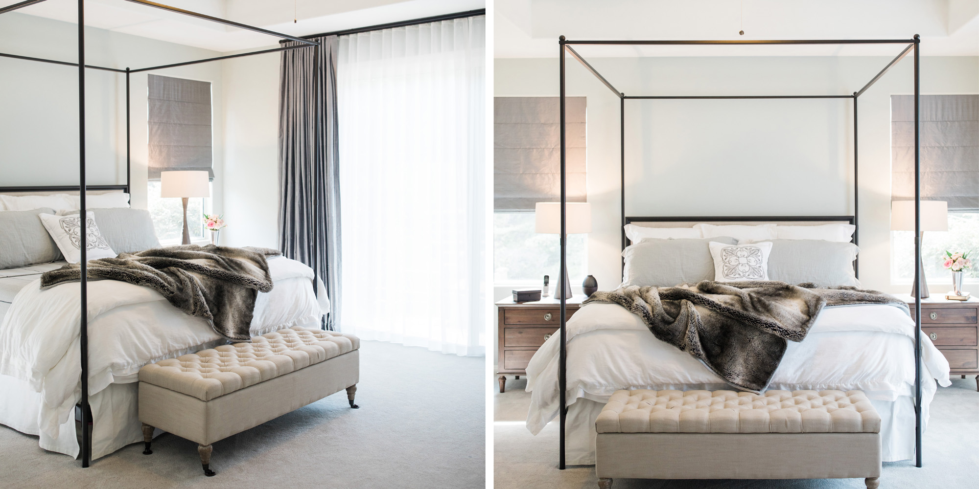 One of our favorite rooms to design was the Master Bedroom. They wanted an adult-style bedroom to indulge in. It now feels like a luxurious retreat. It is tranquil and still easy to maintain for this busy family.