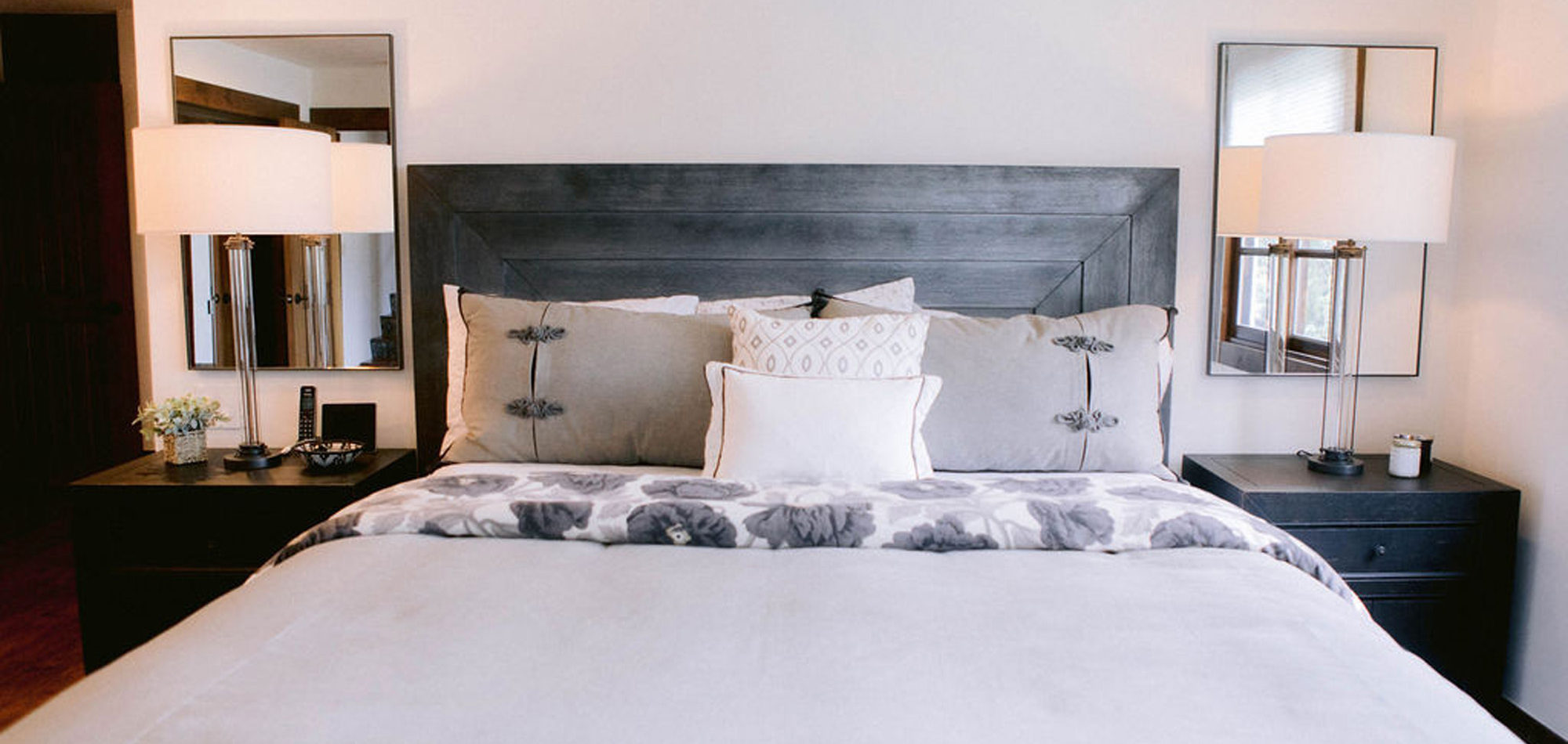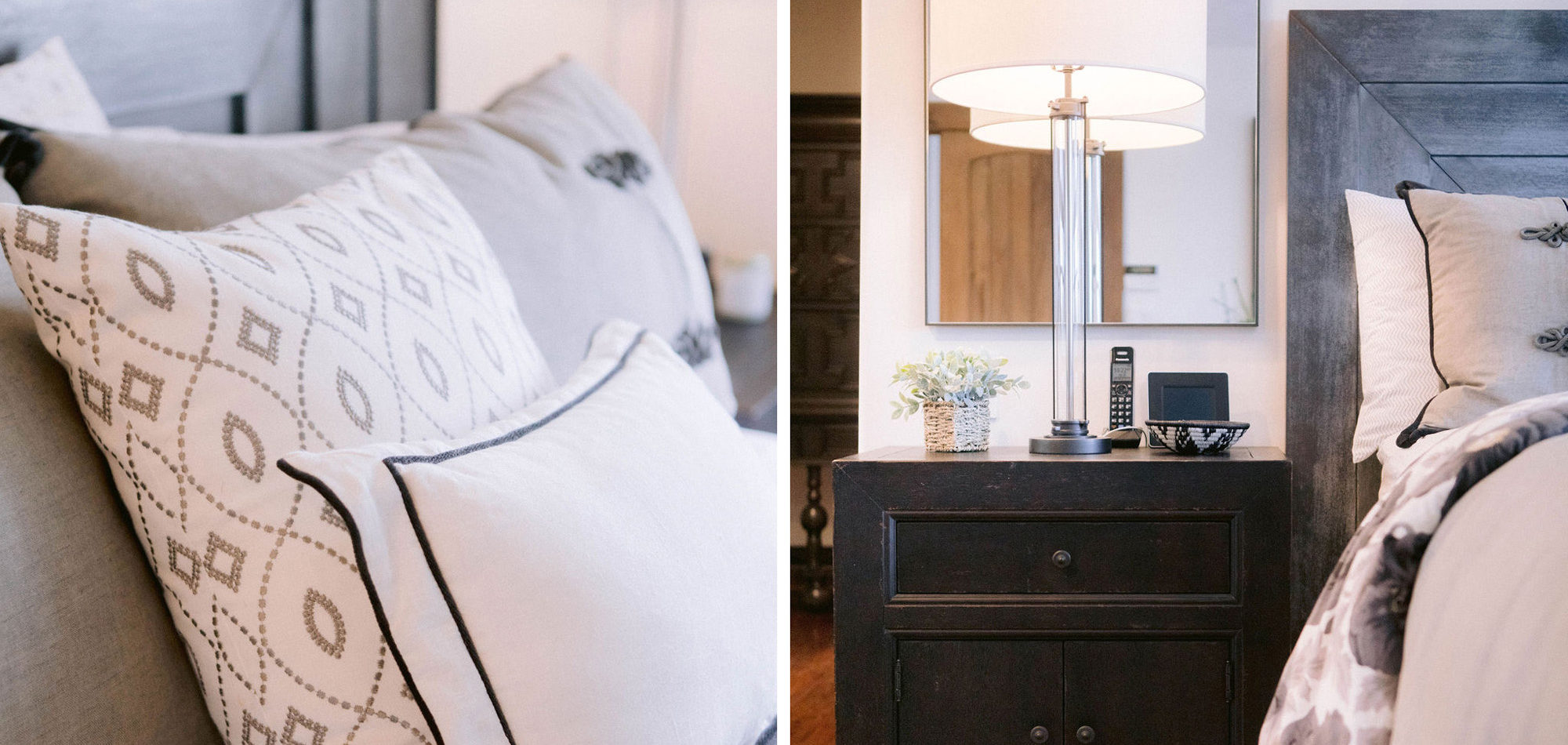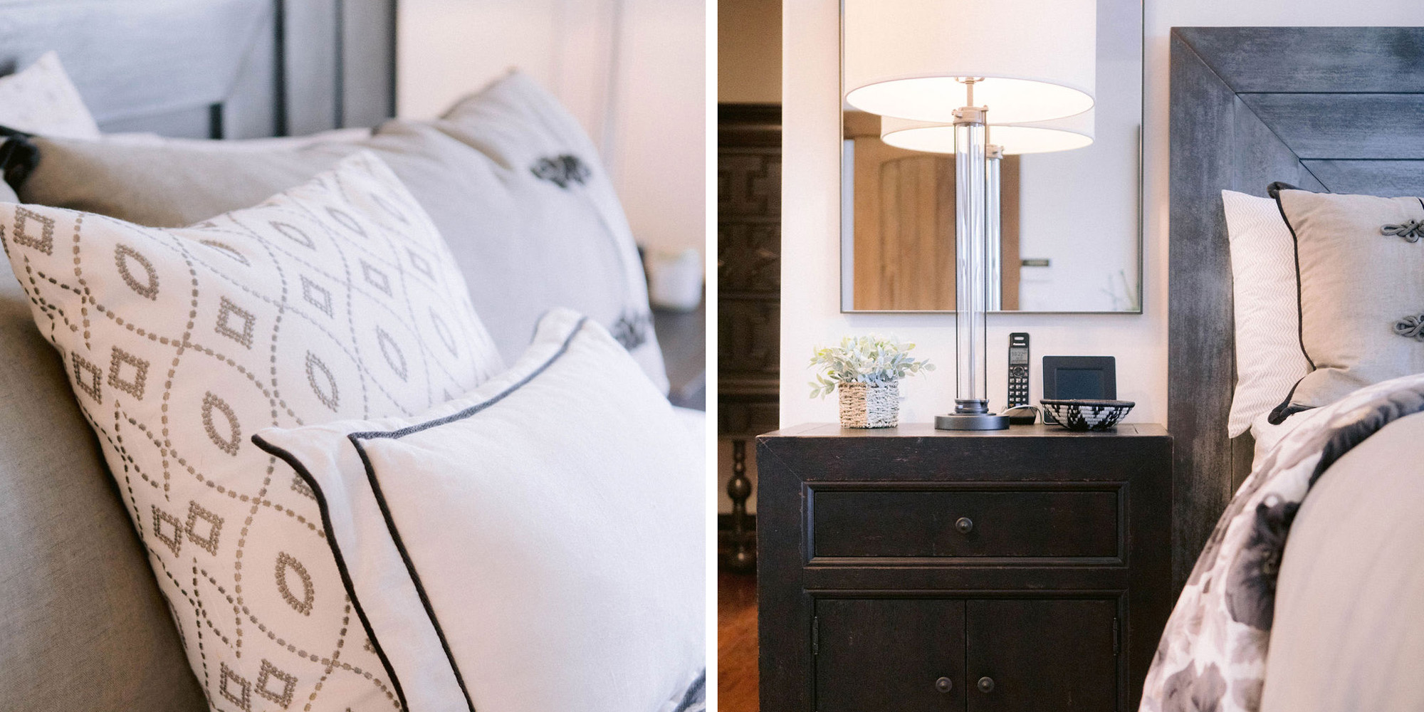 One of our favorite rooms to design was the Master Bedroom. They wanted an adult-style bedroom to indulge in. It now feels like a luxurious retreat. It is tranquil and still easy to maintain for this busy family.