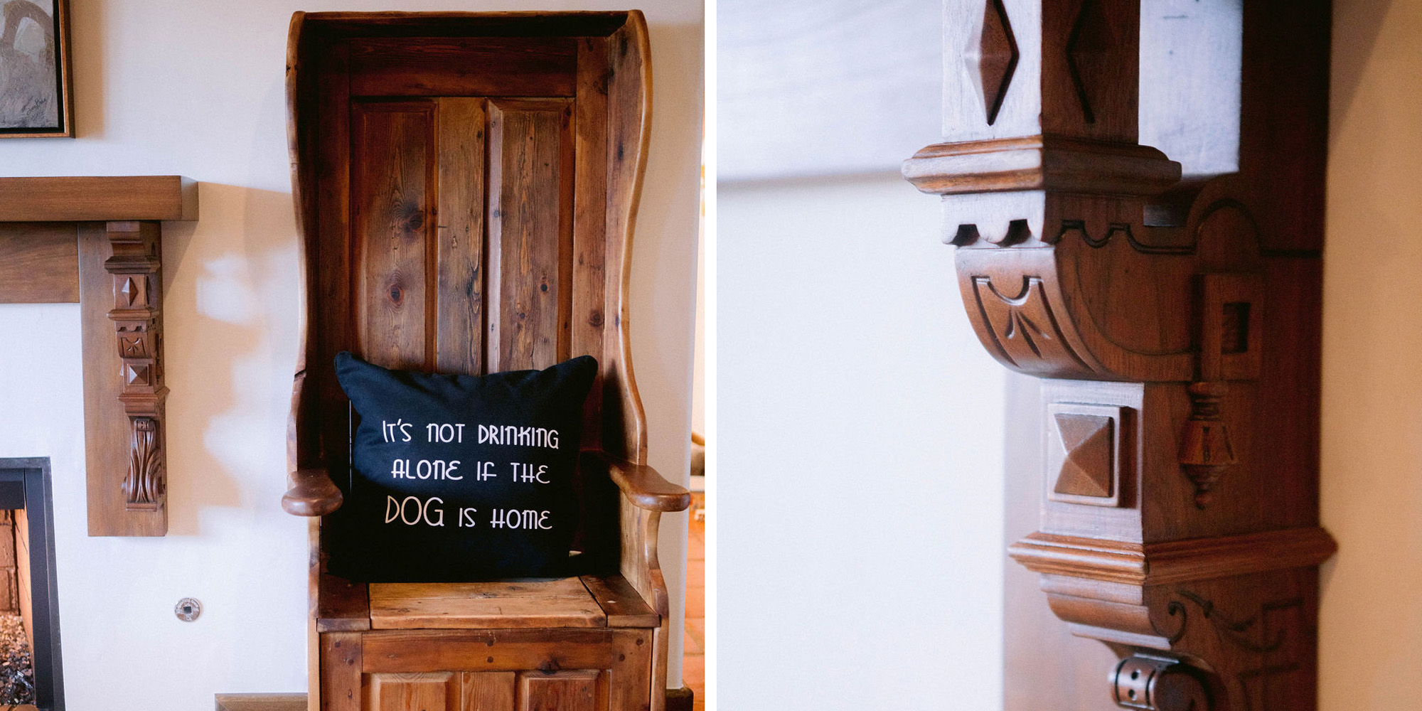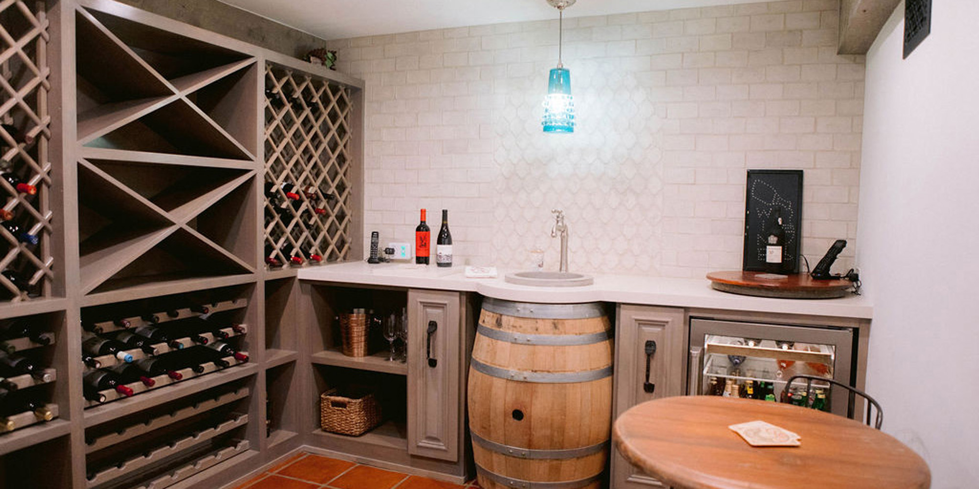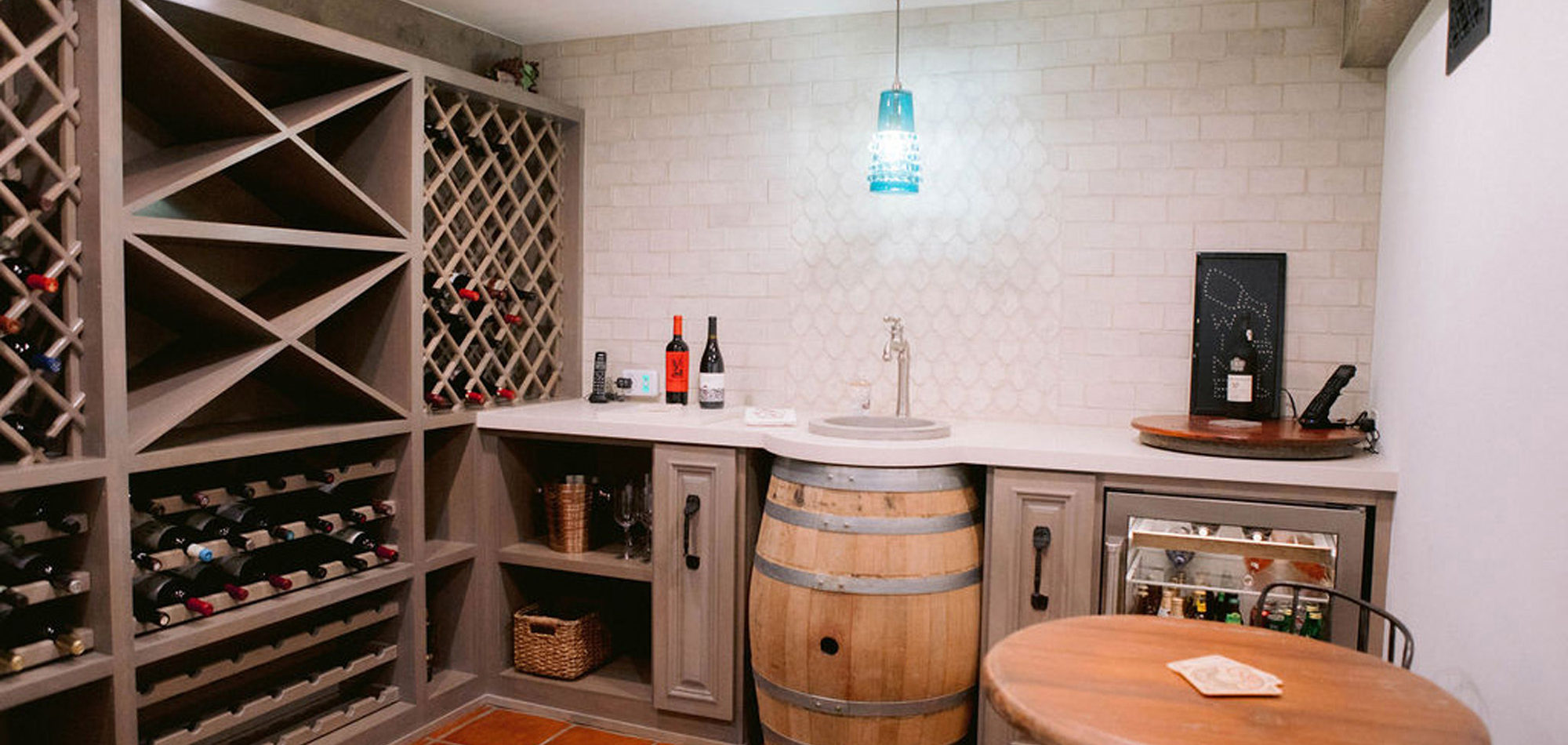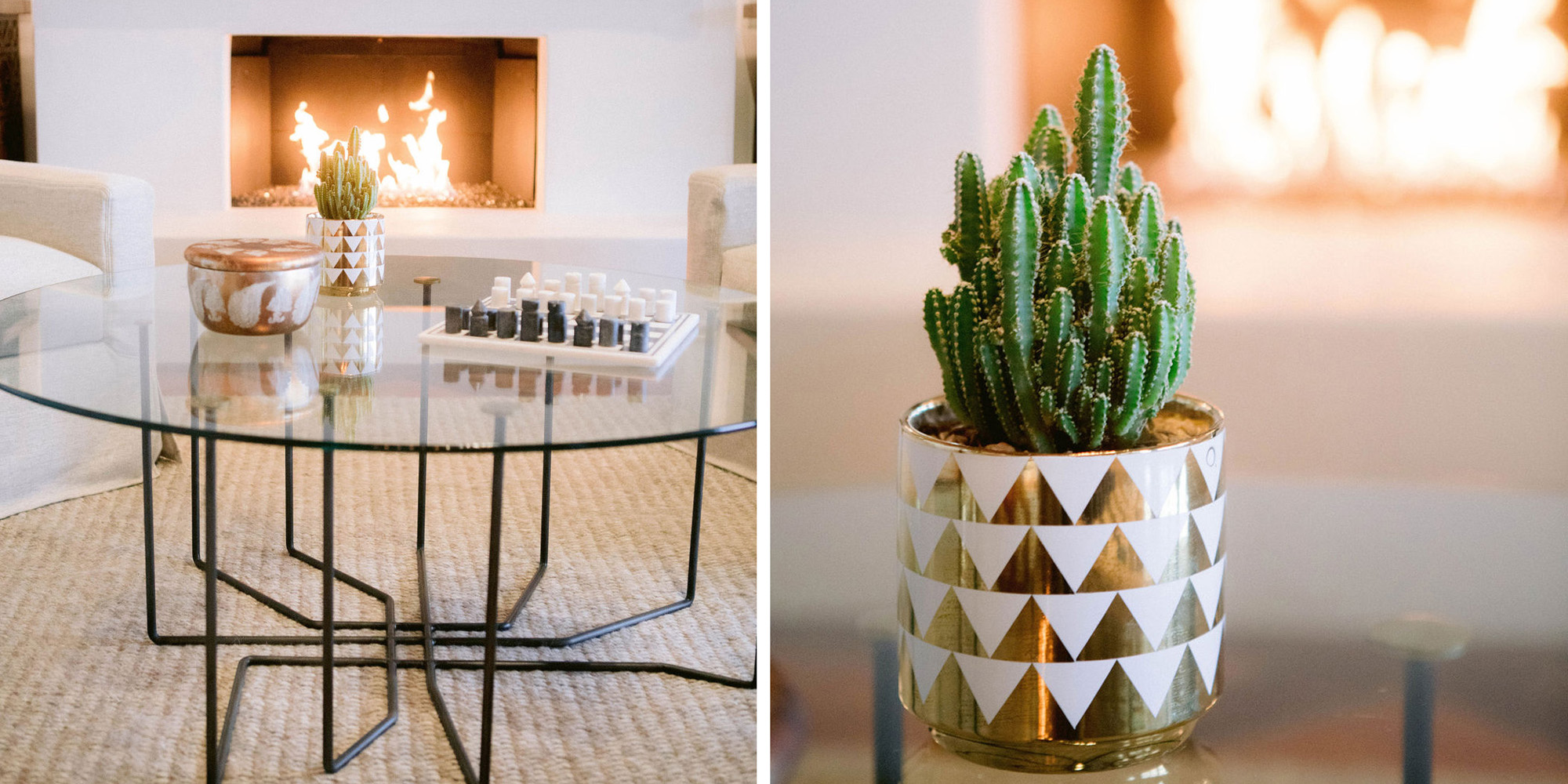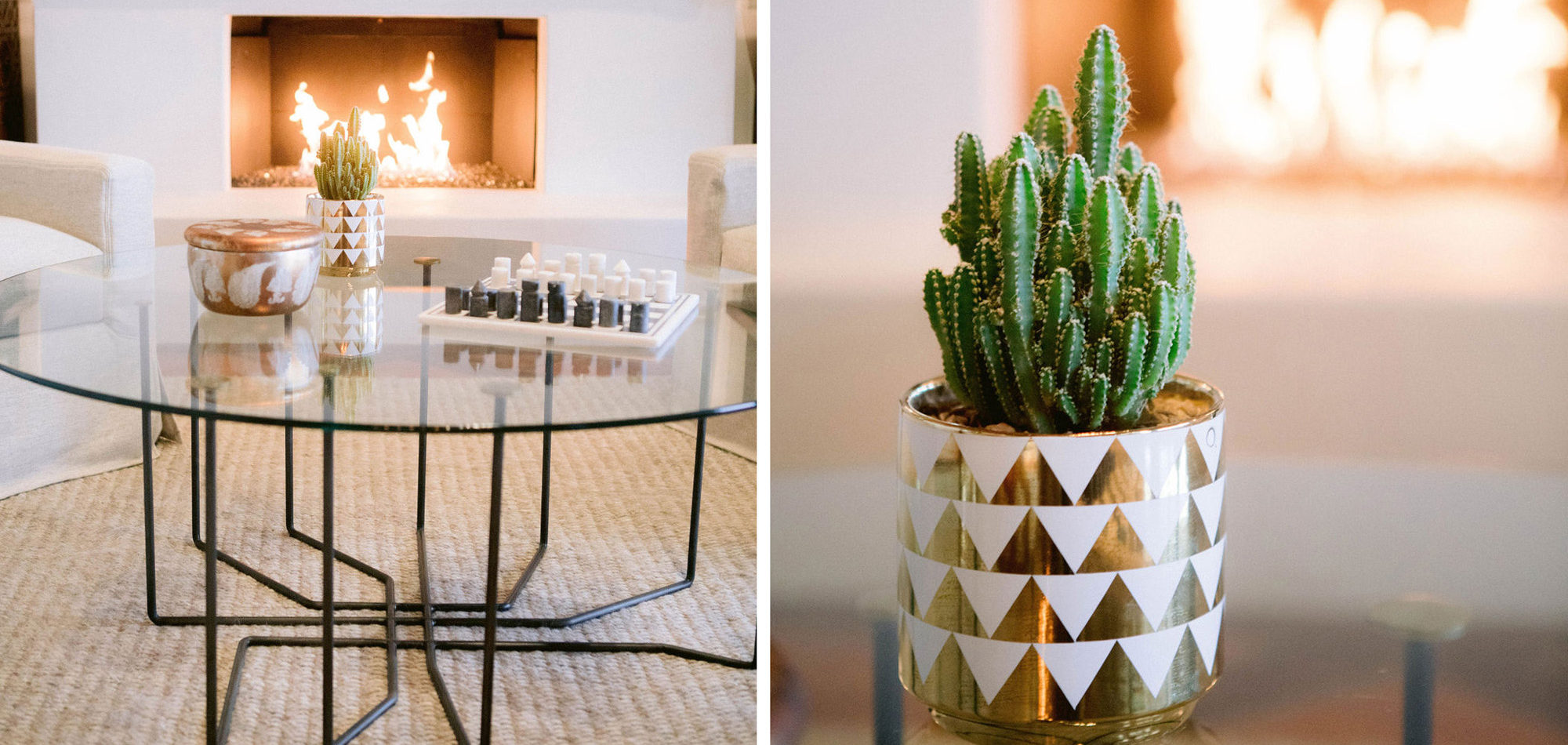 What a joy to work on this home with this fabulous couple and their two dogs. The executive couple who was downsizing wanted to have a new updated look in keeping with the integrity of their Spanish-style home. We wanted to bring in as much charm and interest to the spaces as reflected by its inhabitants. Some of the features, such as the Saltillo tile was to stay. We worked to modernize the home, keeping its best elements while producing a modernized vibe. The first challenge was situating a pool table in what was before the living room and was now the game room. Because this was the first room you see when you enter the home it was imperative to make it look like it was a planned addition. A custom light for over the pool table was designed to create a moody atmosphere. We replaced the brick on the outdated floor-to-ceiling fireplace with a neutral plaster and changed the log insert to glass. Then flanked the fireplace with two custom chests and added four comfortable swivel chairs for a perfect lounging area. The artwork really brought the space together blending sophistication and fun. The result is a warm and welcoming room.