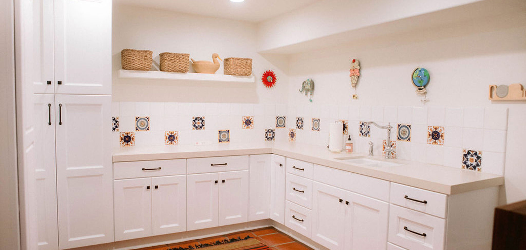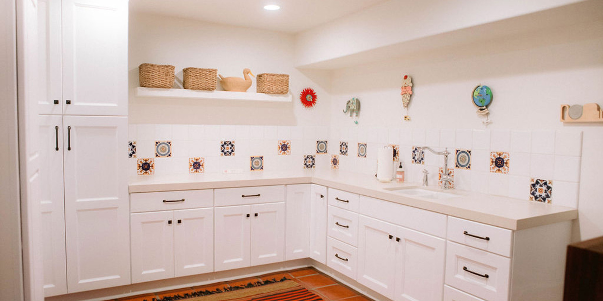 Our clients wanted their home to feel welcoming, which is just like them by the way. The choices throughout the home reveal a happy feeling and create a space that is modern and in keeping with the integrity of the Spanish-style home.
